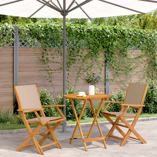 3 Piece Folding Bistro Set Solid Wood Teak and Steel
