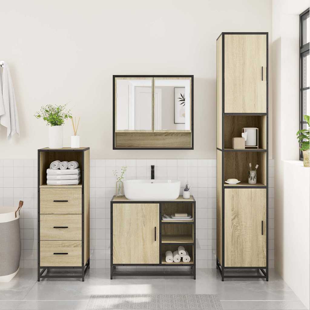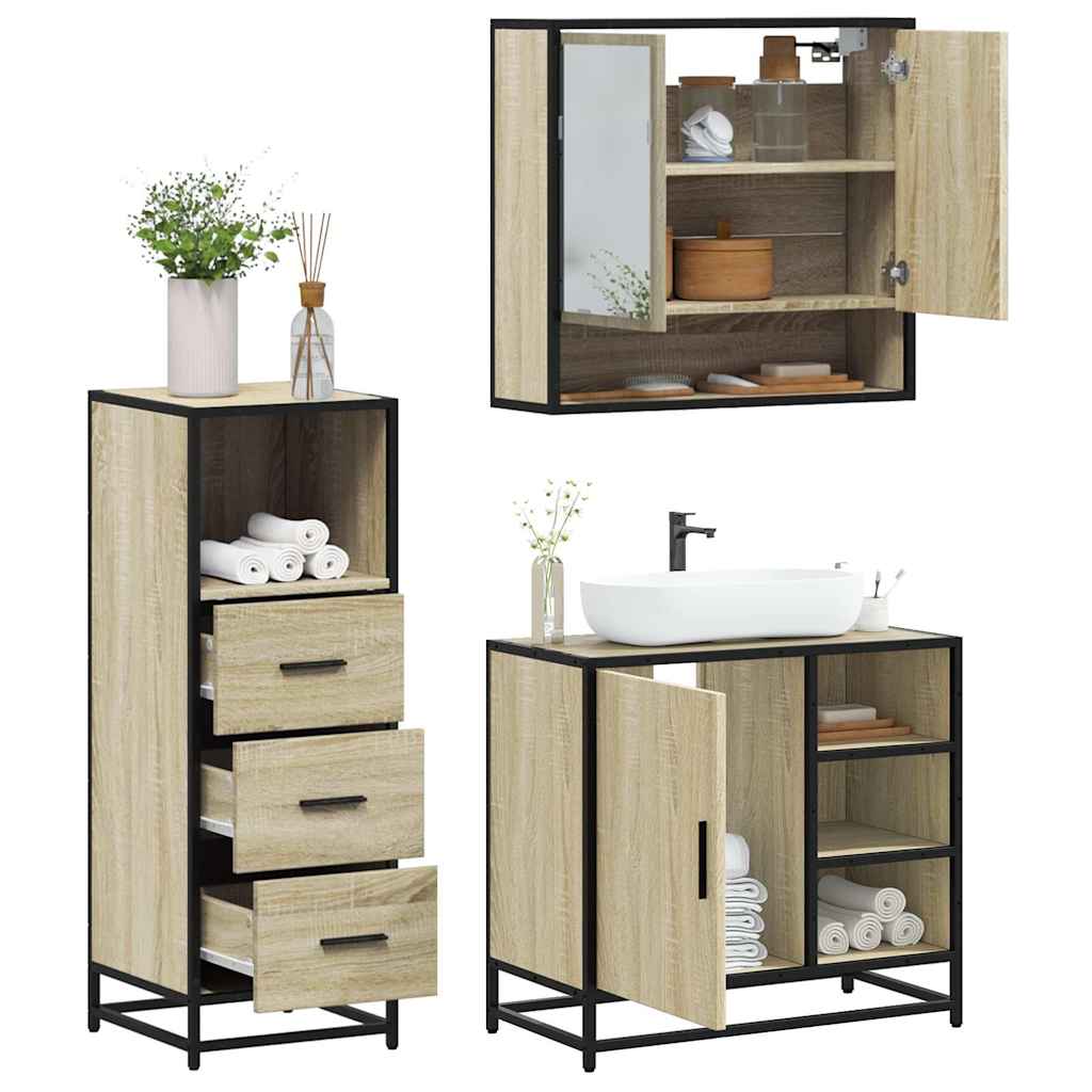 3 Piece Bathroom Furniture Set Sonoma Oak Engineered Wood