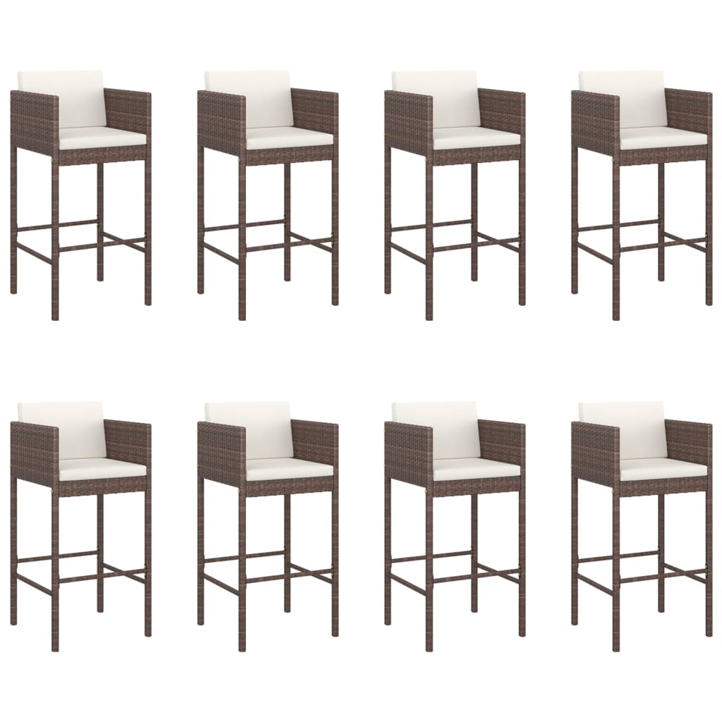 9 Piece Garden Bar Set with Cushions Brown Poly Rattan