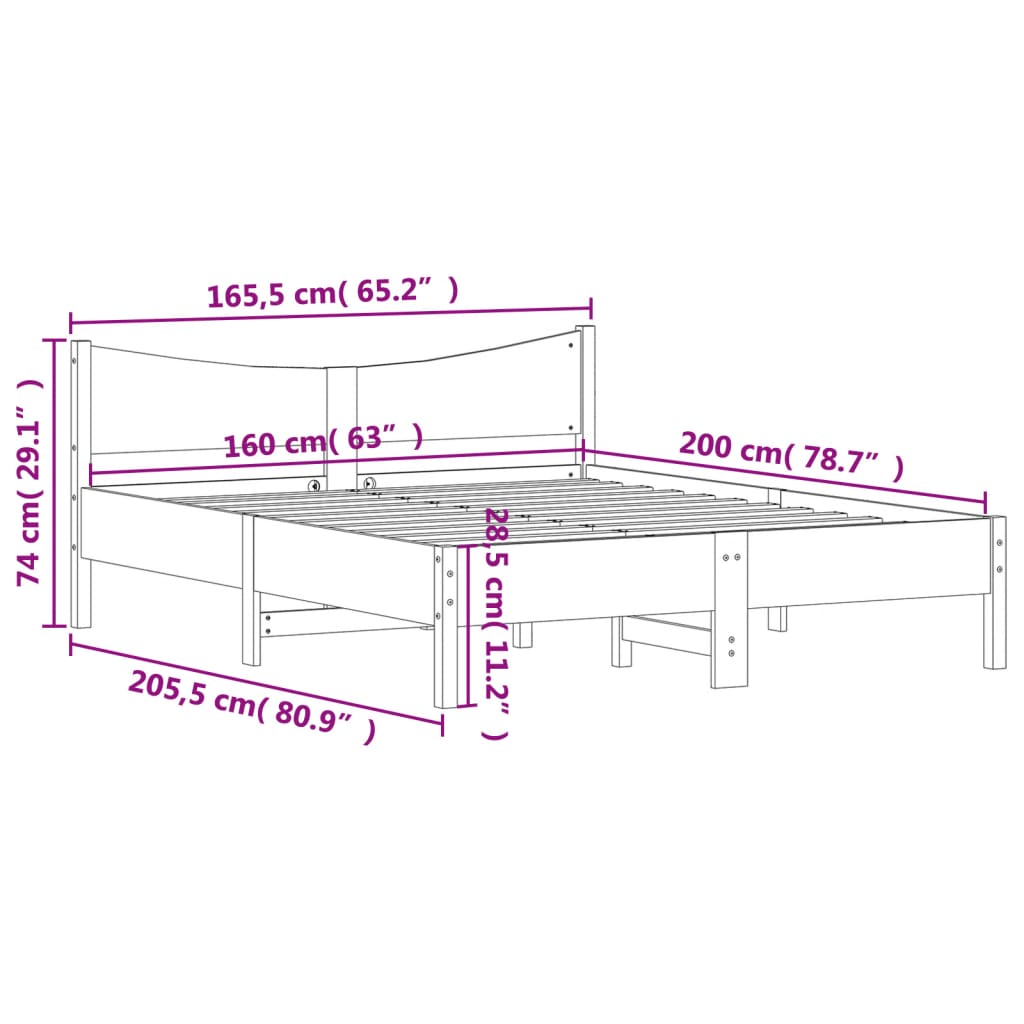 Bed Frame without Mattress 160x200 cm Solid Wood Pine