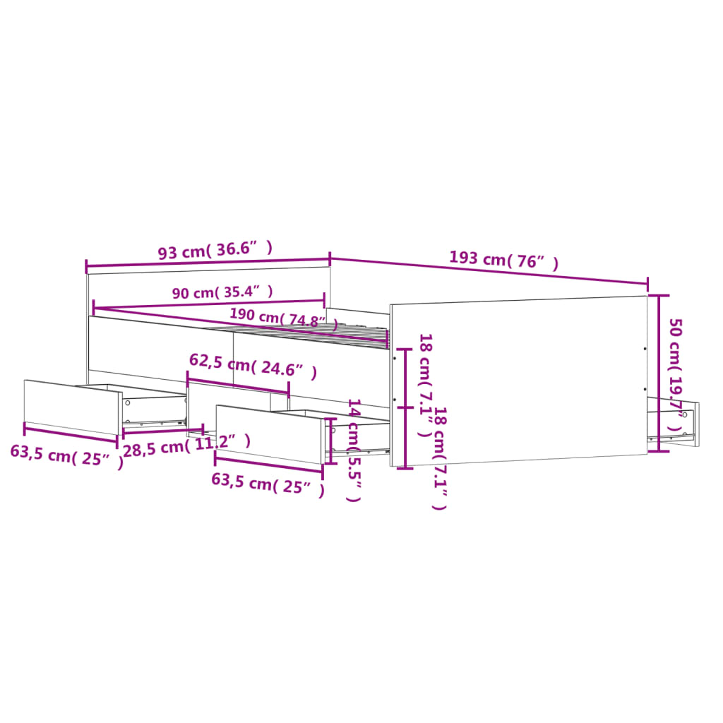 Bed Frame without Mattress Sonoma Oak 90x190 cm Single