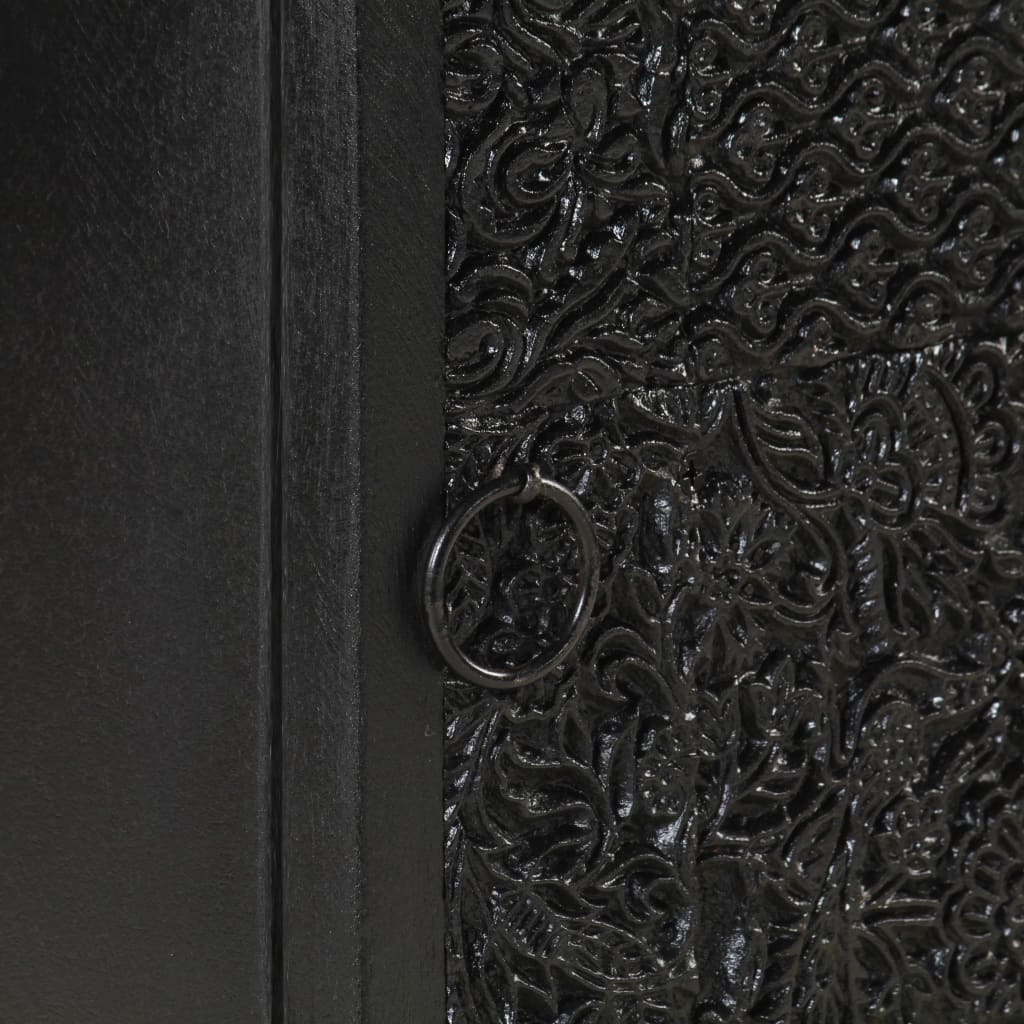 - Material: Solid acacia and mango wood with a black finish, powder-coated steel