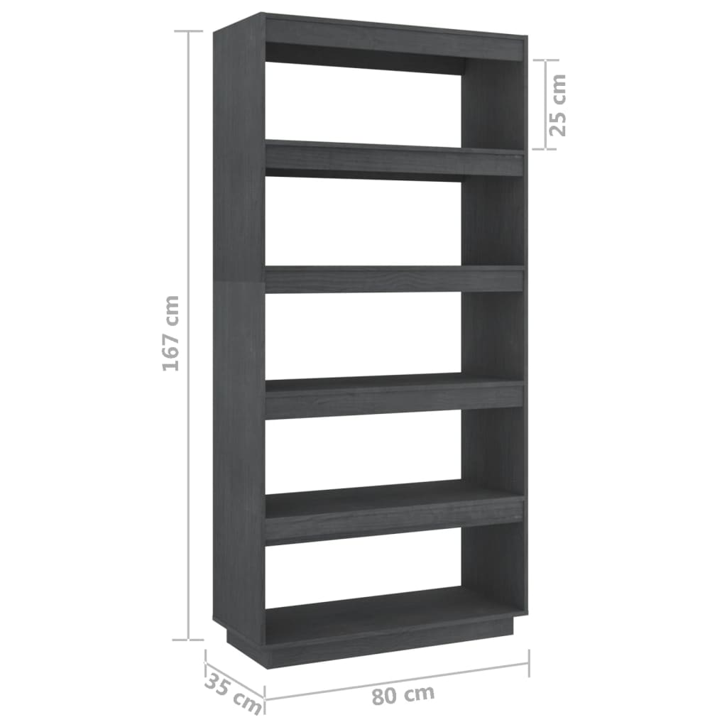 Book Cabinet/Room Divider Grey 80x35x167 cm Solid Pinewood