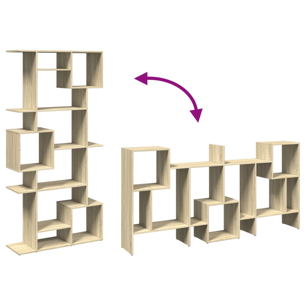 This classic book cabinet, featuring a sleek design, makes a decorative as well as practical addition to your current decor.Long-lasting material: The engineered wood is of exceptional quality with a smooth surface and also features strength, stability, and resistance to moisture.Ample storage space: The bookshelf is designed with 9 spacious compartments, offering ample storage space for keeping your magazines, books, DVDs, multimedia devices and other decorative items well organised and within reach.Versatile shelf: The book stand can serve as a room divider as well, making it a perfect choice for your living space.Easy to maintain: This storage shelf is easy to clean with a damp cloth and requires less maintenance.Warning:To prevent it from tipping over, this product must be used with the provided wall attachment device.