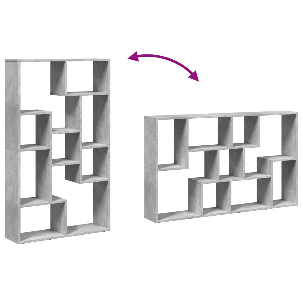 The contemporary bookcase blends a geometric shape design with storage, perfect for organizing your space with style! Stable and durable material: Engineered wood is a durable and stable material with a smooth surface that is resistant to moisture, warping, and splitting, making it a reliable choice for various projects.Ample storage: With compartments of varying sizes, this book case offers flexible storage options for items of different shapes and sizes.Flexible placement options: The shelving unit can be positioned with either its width or height on the ground, offering versatile room layout options.Versatile applications: The display shelf can also be used as a room divider, easily fitting into any style of room. You can place it in the living room to display decoration, in the study to store books and documents, in the bedroom to store everyday items, and in the basement to store bits and bobs.Easy maintenance: Thanks to its smooth surface, the book rack is easy to clean with a damp cloth and requires less maintenance. Warning:To prevent it from tipping over, this product must be used with the provided wall attachment device. Good to know:Screws and plugs for inside the wall are not included. We advise you to find and use screws and plugs suitable specifically for your walls. If you're not sure, you can consult with a professional. Please read and follow each step of the instructions.