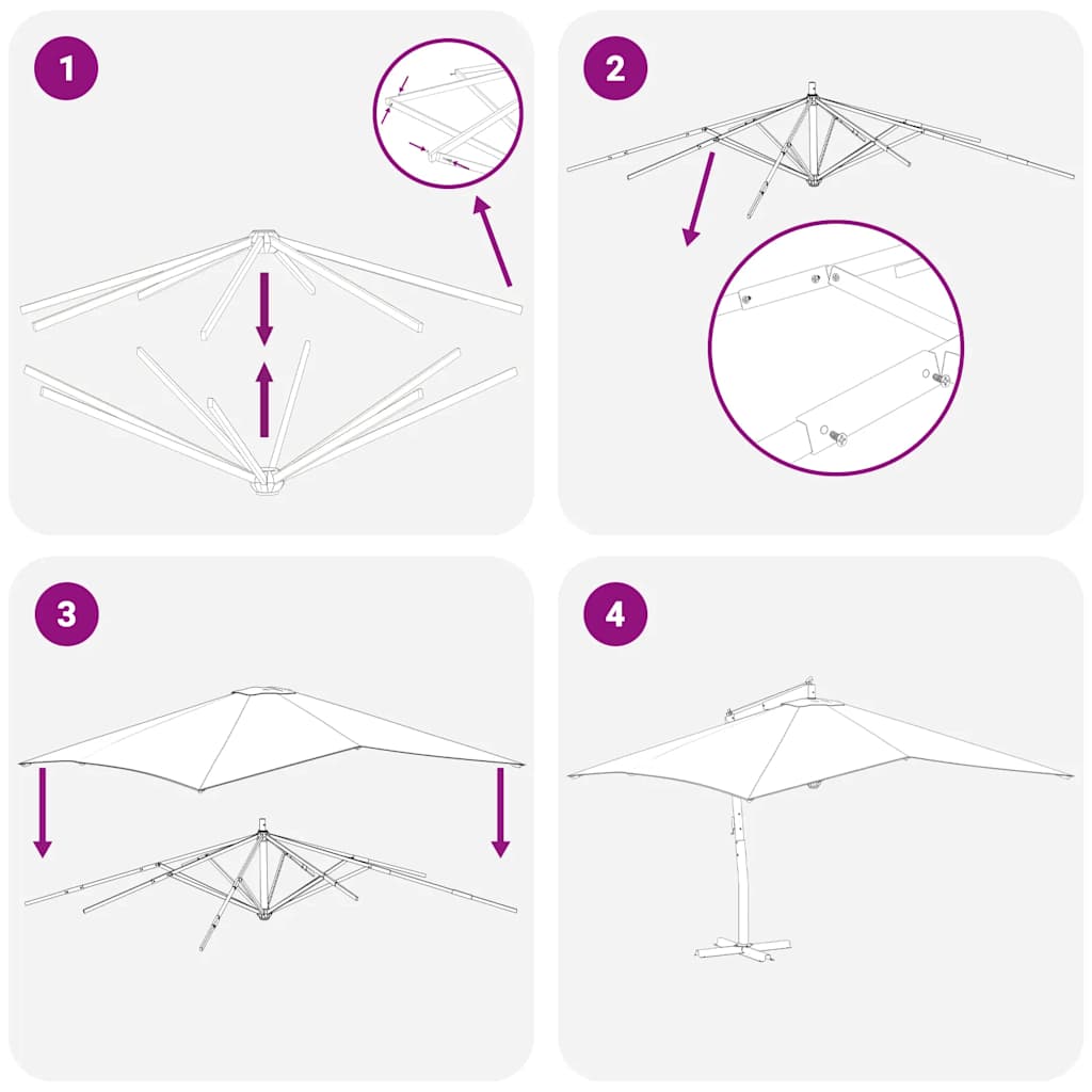 This practical cantilever garden parasol is perfect to create some shade, making it a must when you enjoy your outdoor time. Premium material: Made of UV protective and water-resistant polyester, the outdoor umbrella cover provides you with optimum protection against the sun and moisture.Stable frame: The garden parasol features a sturdy cross base to add stability. The strong solid hardwood pole, along with the 8 durable ribs, makes this garden parasol very stable and durable.Convenient operation: This cantilever garden parasol is equipped with crank mechanism for open and close system. A hand-crank lift system allows you to adjust the shade and block the sun at all angles easily, keeping cool and comfortable.