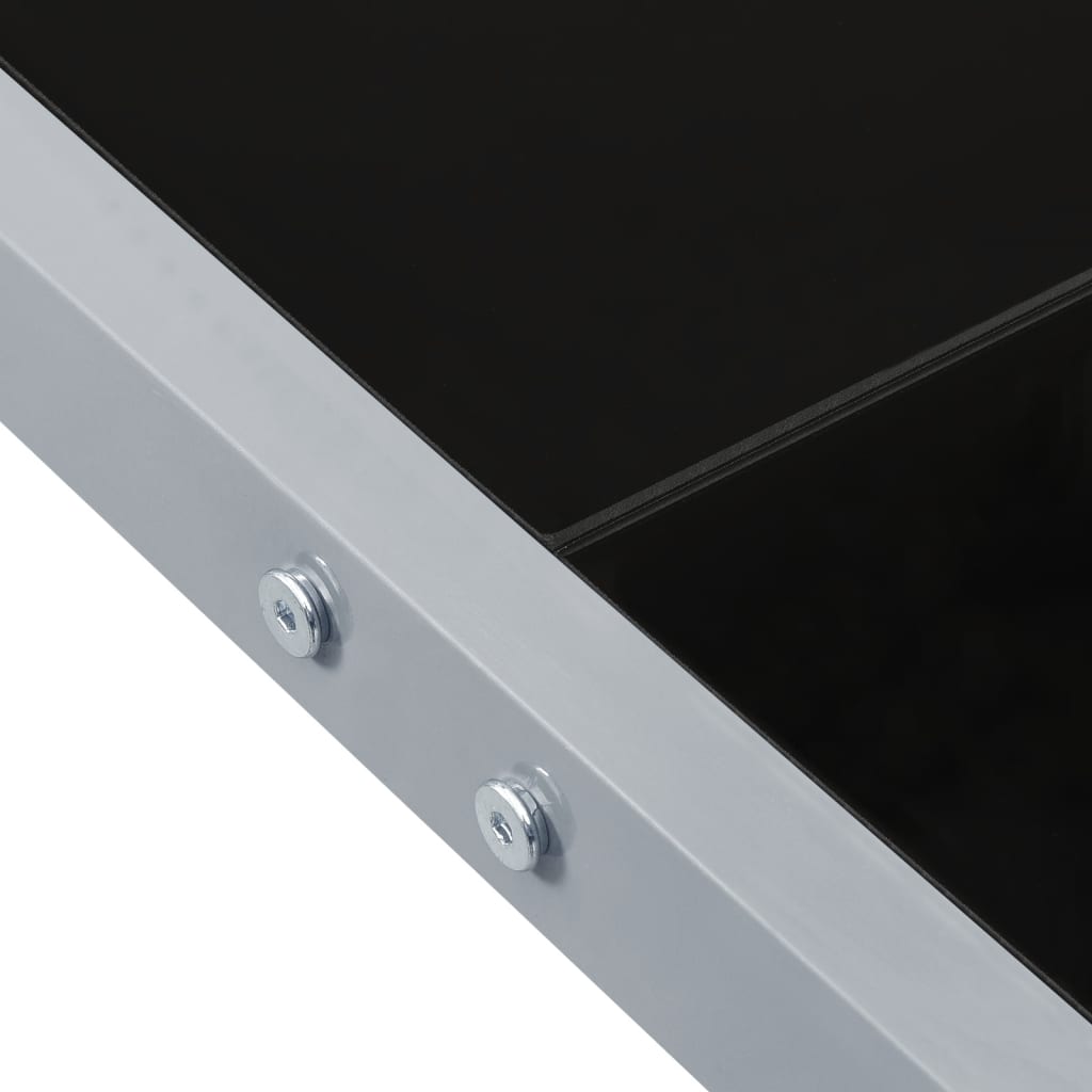 - Material: Powder-coated steel, tempered glass