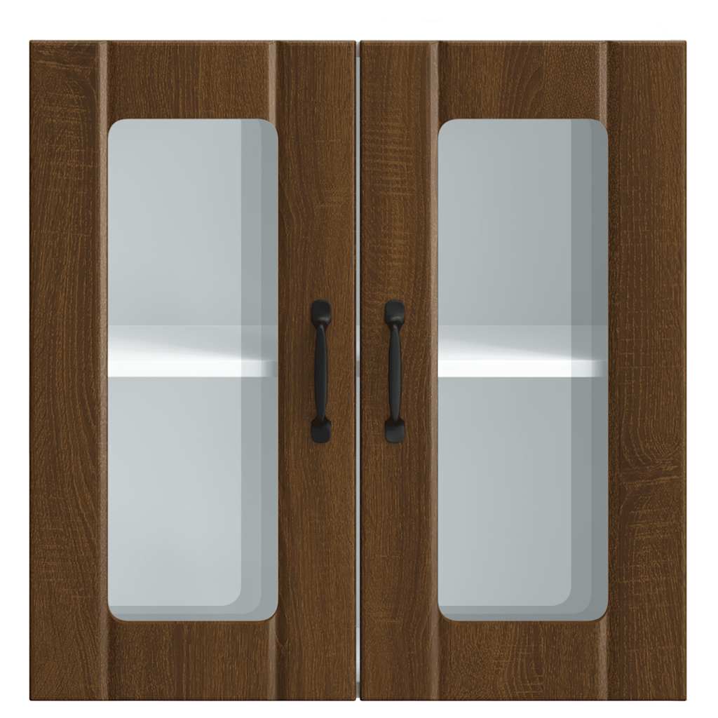 Kitchen Wall Cabinet with Glass Door Lucca Brown Oak Engineered Wood