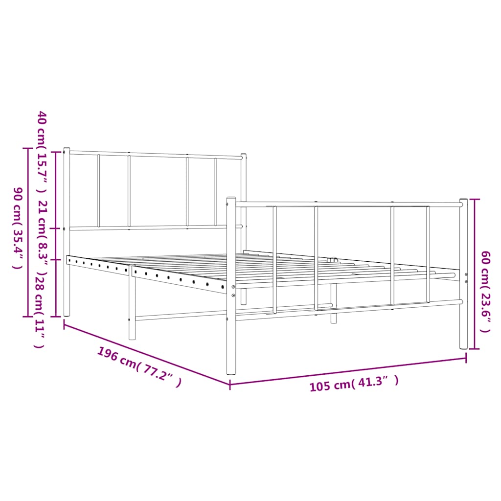 Metal Bed Frame without Mattress with Footboard Black 100x190cm