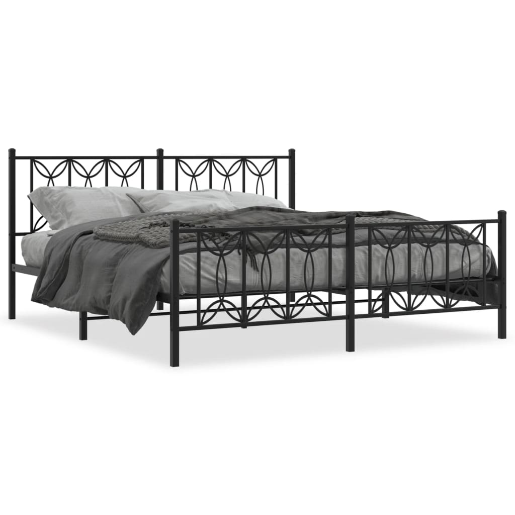 Metal Bed Frame without Mattress with Footboard Black 183x213cm