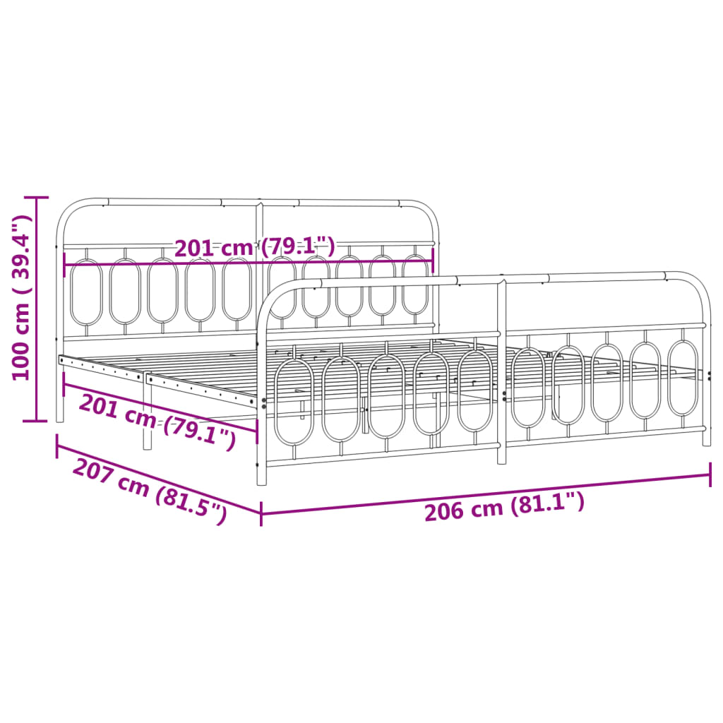Metal Bed Frame without Mattress with Footboard Black 200x200cm