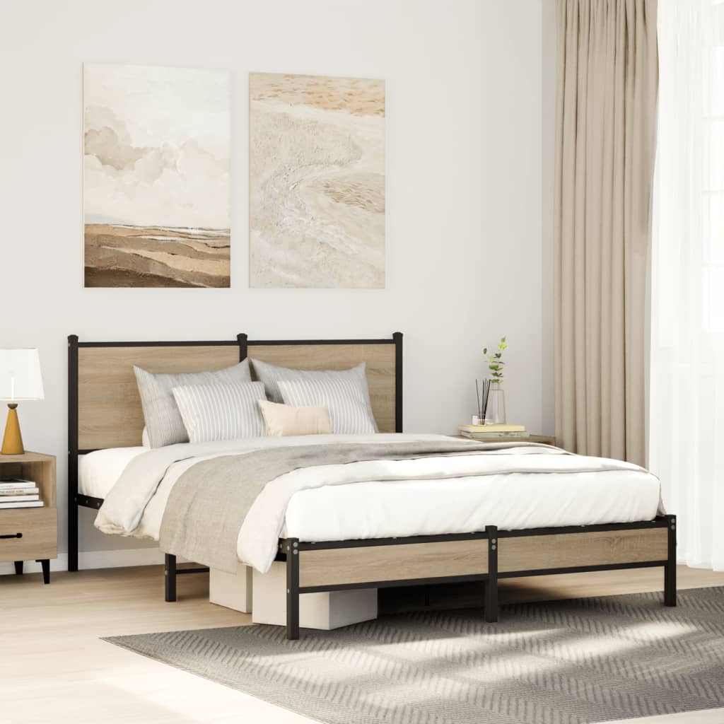 Metal Bed Frame without Mattress Sonoma Oak 137x190 cm