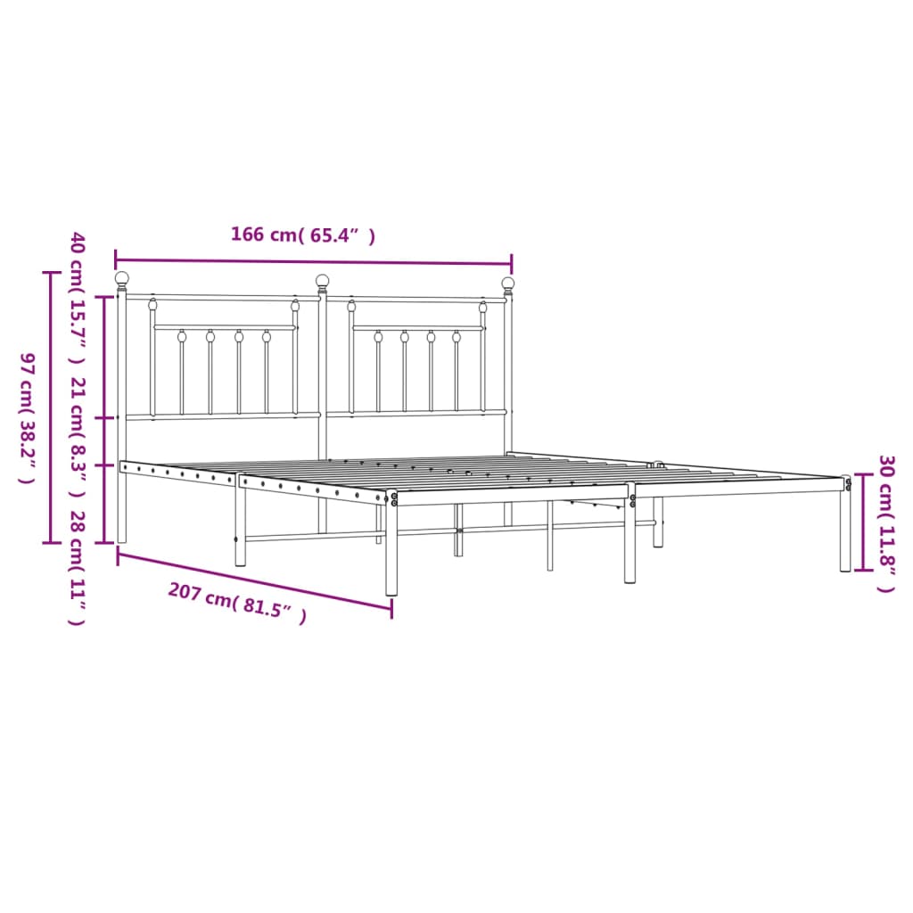 Metal Bed Frame without Mattress with Headboard White 160x200cm