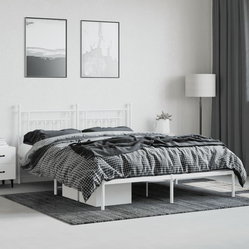 Metal Bed Frame without Mattress with Headboard White 180x200cm