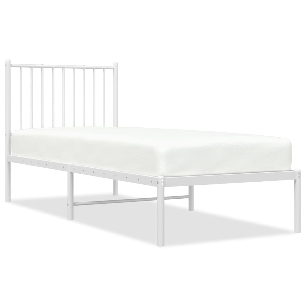 Metal Bed Frame without Mattress with Headboard White 75x190cm