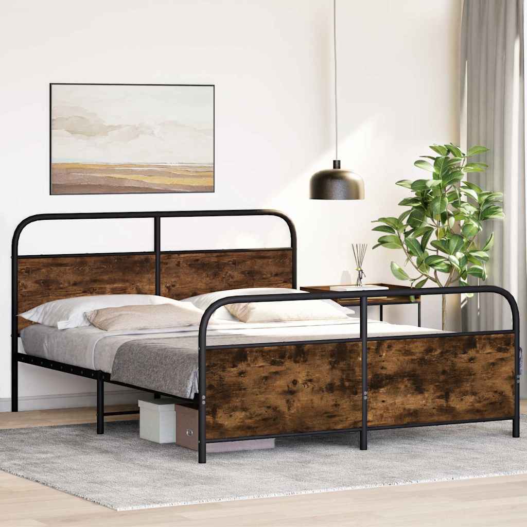Metal Bed Frame without Mattress Smoked Oak 150x200 cm King Size