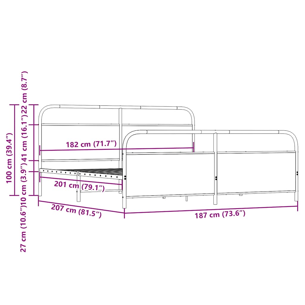 Metal Bed Frame without Mattress Smoked Oak 180x200 cm Super King