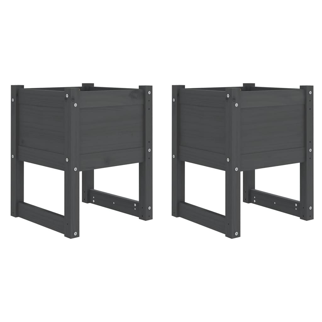 Planters 2 pcs Grey 40x40x52.5 cm Solid Wood Pine
