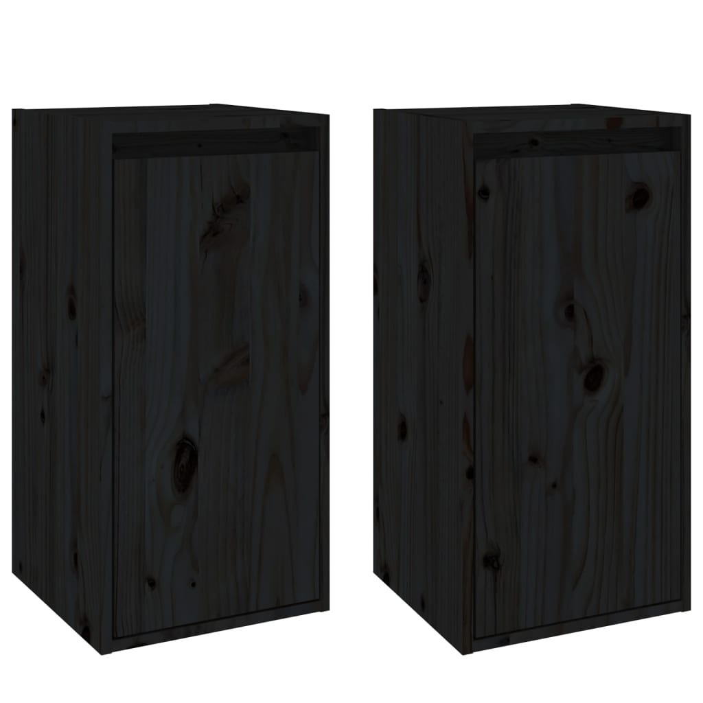 Wall Cabinets 2 pcs Black 30x30x60 cm Solid Wood Pine