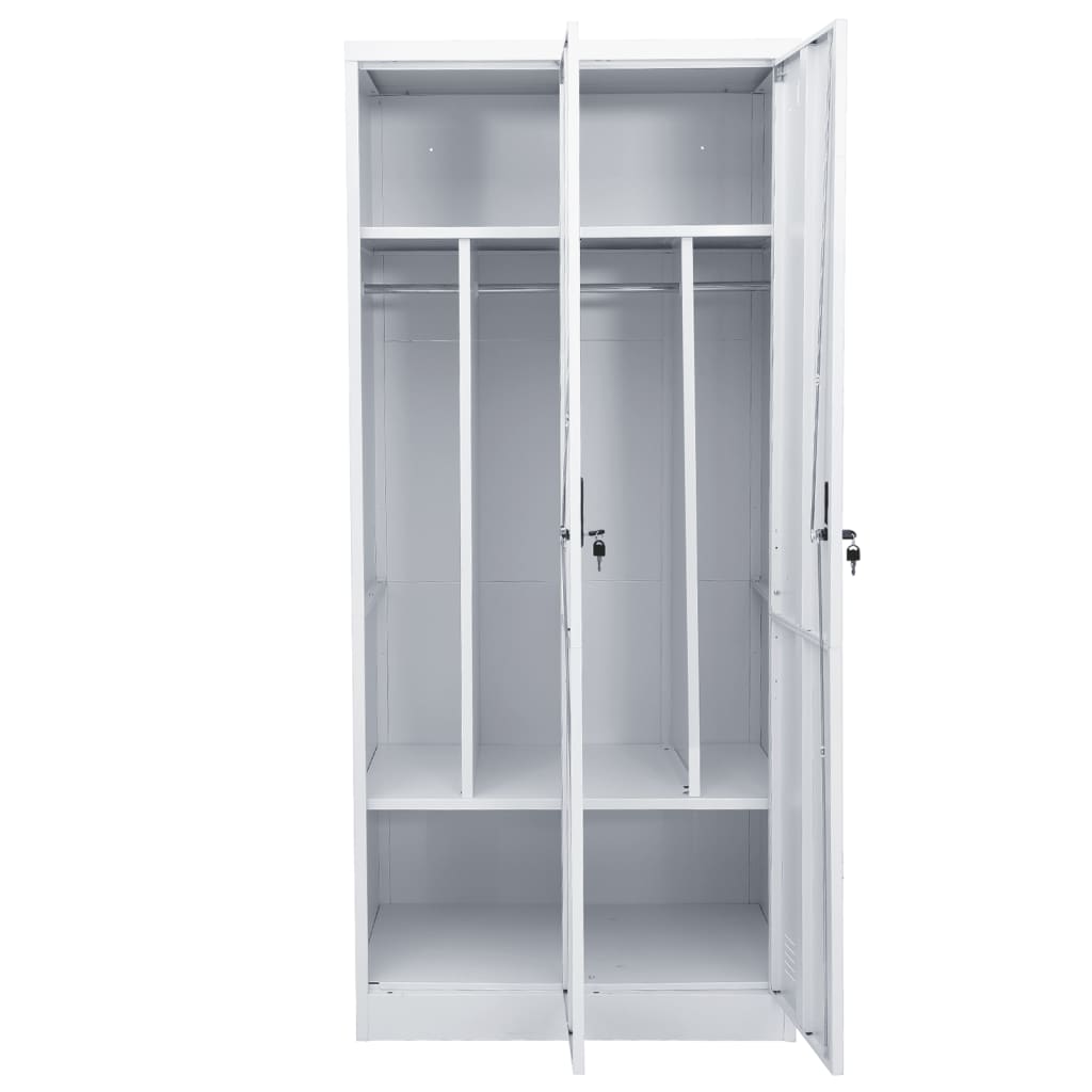 This steel wardrobe makes your clothes or daily accessories easy to access. It will provide a perfect storage solution and add chic touch to your existing home. This wardrobe is made of steel, making it durable as well as easy to clean. It has 2 shelves and 2 locks. This clothing cabinet provides large compartments, which offer you ample storage space both for your longer outfits and other folded clothes or accessories, such as sweaters, jeans, hats, hand bags, etc.