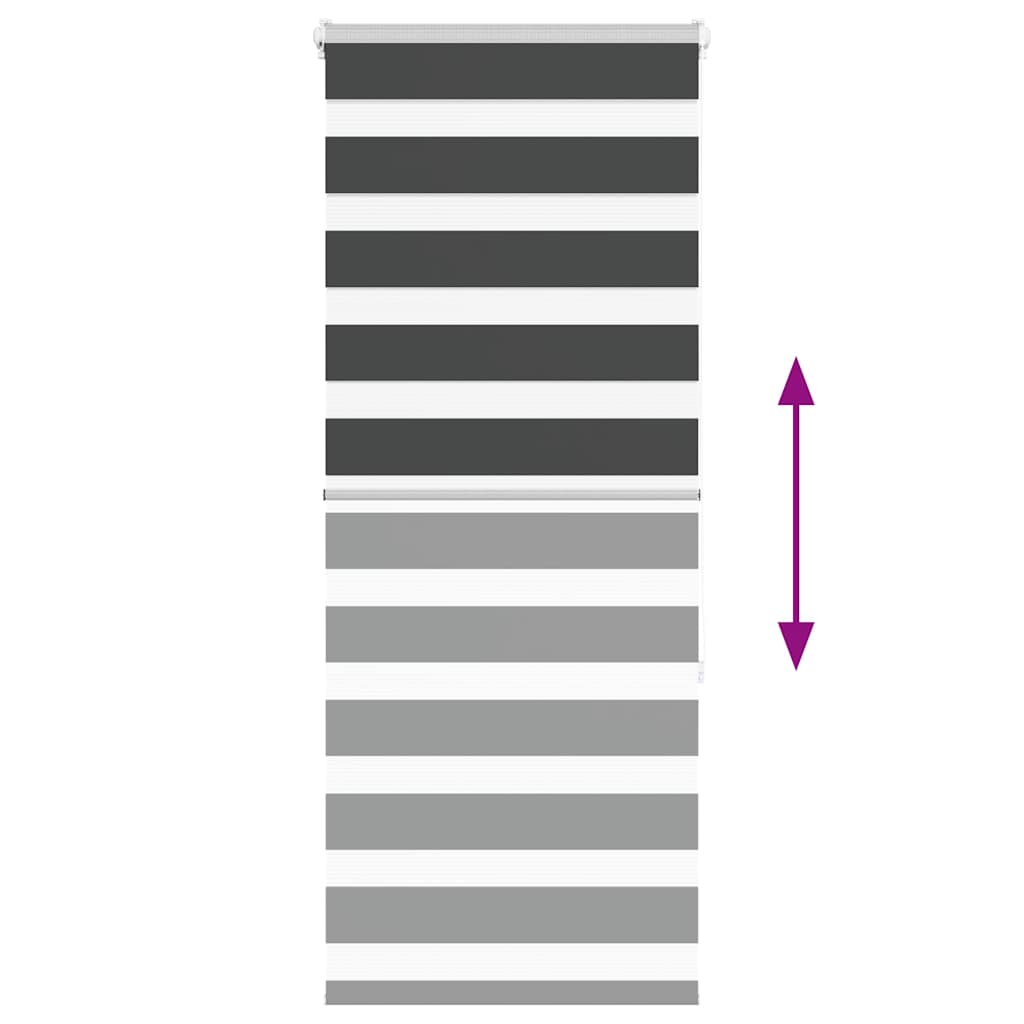 Elevate your room's style and functionality with this zebra blind, offering privacy and elegance. Durable and low maintenance: Made from 100% polyester, the zebra blind is built to last and resist wear and tear. They are also easy to clean, typically requiring light dusting or wiping with a damp cloth.Privacy and sun protection: The two-layer design features alternating transparent and opaque fabric panels. The light can be easily controlled using the chain hoist, allowing for seamless adjustment of the room's lighting from translucent to fully darkened.Two assembly ways: You can attach the zebra roller blind to the wall or window with screws or without drilling using clamping brackets, depending on your needs.Elegant design: Thanks to its sleek and modern pattern design, this zebra roller blind effortlessly complements a variety of room decor. You can use it in the living room, bedroom, office, and so on.Child safety and adjustability: The roller blind includes a chain connector that makes it easy to adjust the height according to your needs, and it also has a cord clip to add child safety. Warning:Keep cords out of the reach of young children. Cords may become wrapped around a child’s neck. Good to know:Before buying blinds, start by measuring your window glass. Just a friendly tip: the fabric is a bit narrower than the total width, including the brackets.To make sure your new blinds provide complete coverage, just add 4,1 cm to the width of the window glass when calculating what to order.